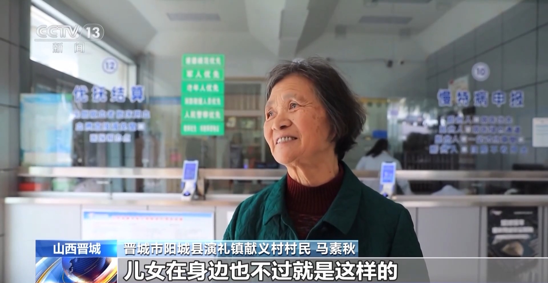 晋城市阳城县演礼镇献义村村民 马素秋:志愿者对我们老年东谈主各方面齐挺好的,儿女在身边也不外便是这么的。