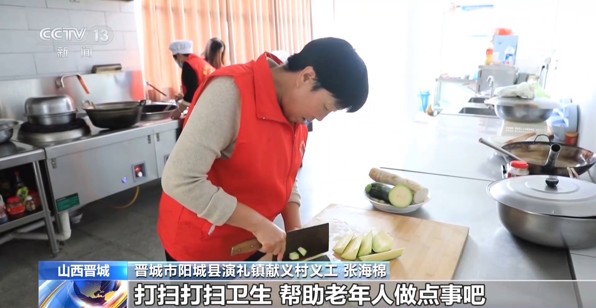 晋城市阳城县演礼镇献义村义工 张海棉:来了便是帮帮厨,作念作念饭,打扫打扫卫生,匡助老年东谈主作念点事。