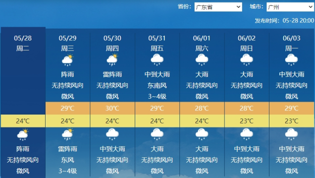 大城市中,像是广州、深圳、珠海、海口、三亚 ,今后6天雨水可能会“全勤”。